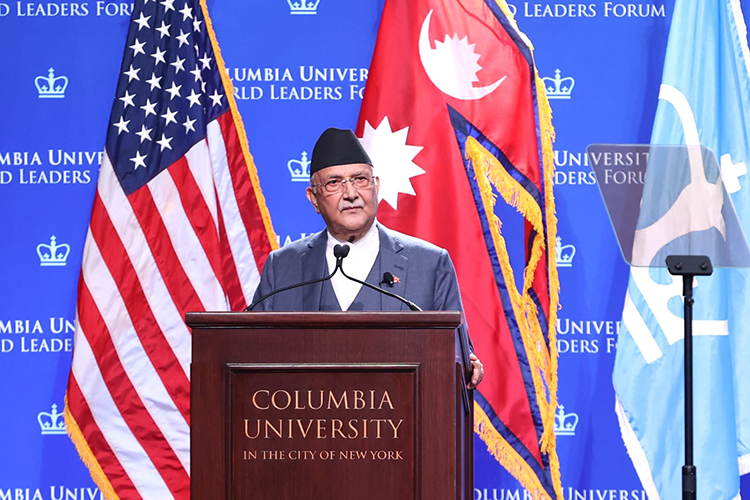 संयुक्त राष्ट्रसङ्घको ७९औँ महासभामा भाग लिन नेपाली प्रतिनिधिमण्डलको नेतृत्व गर्दै संयुक्त राज्य अमेरिकाको न्युयोर्कमा रहेका प्रधानमन्त्री ओलीले सोमबार कोलम्बिया विश्वविद्यालयद्वारा आयोजित वल्ड लिडर्स फोरममा गरिबी निवारण गरी सबैलाई सम्मानजनक रूपमा बाँच्न पाउने अधिकार दिलाउन समृद्ध नेपाल सुखी नेपालीको राष्ट्रिय आकाङ्क्षा अघि सारिएको स्पष्ट पारे।